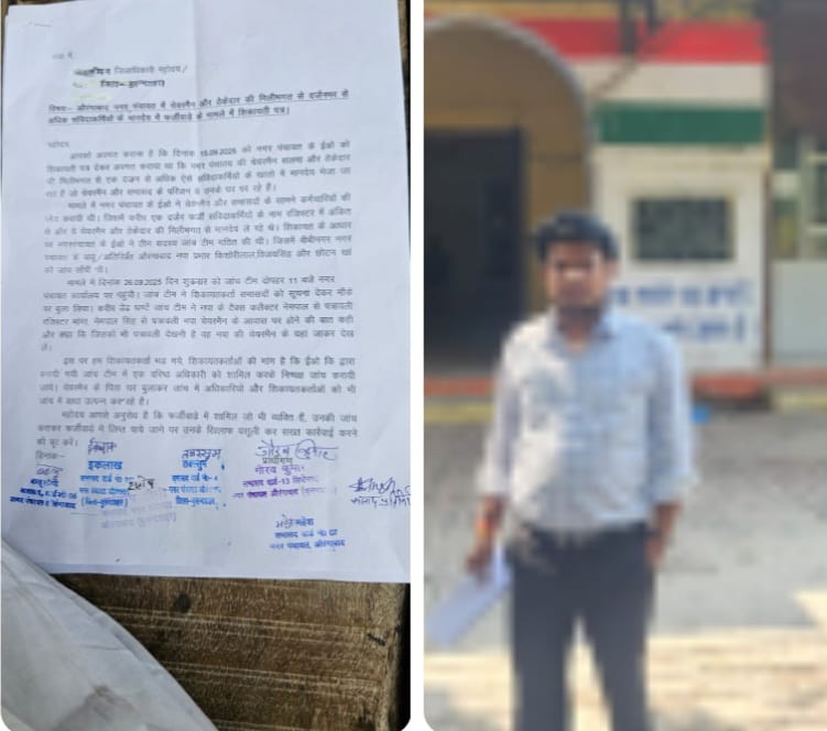 नगर पंचायत के आधा दर्जन सभासदों ने जिलाधिकारी श्रुति शर्मा एवं ए डी एम (प्रशासन) प्रमोद पाण्डेय को संयुक्त हस्ताक्षरित शिकायती पत्र देकर अवगत कराया है कि हमने दिनांक 15 सितंबर को अधिशासी अधिकारी को शिकायती पत्र देकर सूचना दी थी कि चेयरमैन सलमा और ठेकेदार की मिली भगत से एक दर्जन से अधिक ऐसे संविदा कर्मियों के खाते में मानदेय भेजा जा रहा है जो कि चेयरमैन, सभासद के परिजन हैं अथवा चेयरमैन के घर पर निजी कार्य कर रहे हैं।