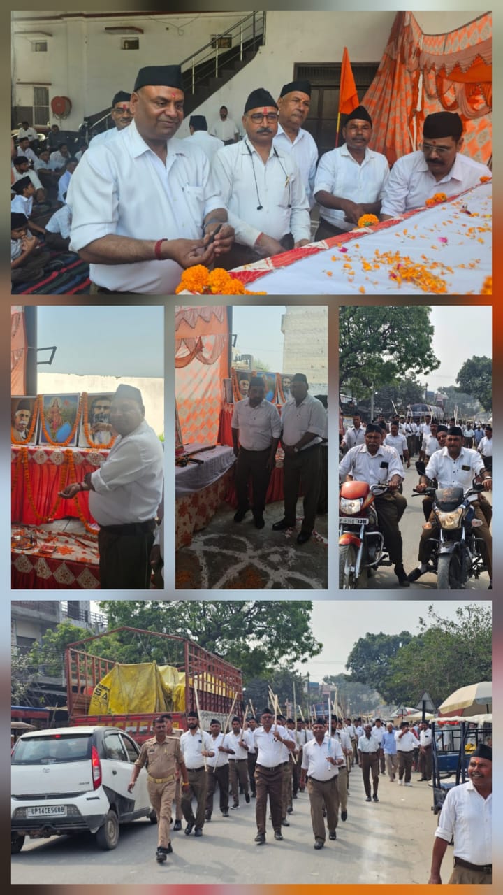 औरंगाबाद : बुलंदशहर राष्ट्रीय स्वयंसेवक संघ के सौ वर्ष पूरे होने के उपलक्ष्य में राष्ट्रीय स्वयंसेवक संघ ने पथ संचालन कार्यक्रम का आयोजन किया।गण वेश धारी आर एस एस कार्यकर्ताओं ने शस्त्र पूजन के उपरांत कस्बे के विभिन्न मार्गों पर पथ संचालन किया।रविवार सुबह कमल प्लेस पर कार्यकर्ताओं ने विजय दशमी पर्व के उपलक्ष्य में शस्त्र पूजन कार्यक्रम आयोजित किया। प्रांतीय संगठन मंत्री सुनील कुमार ने बतौर मुख्य अतिथि कार्यक्रम का दीप प्रज्वलित कर शुभारंभ किया। बौद्धिक प्रमुख हरिशंकर, प्रांत संगठन मंत्री किसान संघ हरिशंकर तथा खंड संघ संचालक शंकर सैनी ने कार्यक्रम को संबोधित करते हुए बताया कि आर एस एस ने अपनी स्थापना के सौ वर्ष सफलता पूर्वक पूरे कर एक कीर्तिमान स्थापित किया है।नव वर्ष के दिन संघ के प्रथम सरसंघचालक डॉ हेडगेवार का जन्म हुआ था।आज के दिन ही संघ का स्थापना दिवस मनाया जाता है। उन्होने कहा कि सृष्टि की रचना भी ब्रृह्मा जी ने आज के दिन ही की थी । सुनील जी ने कहा कि कितना बड़ा दुर्भाग्य पूर्ण है कि हम देवों की संतान होने के बाबजूद हम असुरों के गुलाम बन गये। हमें जाति पांत का भेद भुलाकर एक जुट होकर संगठित होना होगा तभी देश समाज का कल्याण संभव है। वक्ताओं ने संगठन में ही शक्ति है का मूल मंत्र दिया।पथ संचालन विभिन्न मार्गों से होते हुए पुनः कमल प्लेस पहुंच कर संपन्न हुआ। इस अवसर पर पूर्व चेयरमैन राजकुमार लोधी दीपक अग्रवाल दीनू हरीश लोधी डॉ राजेश गोयल अभिषेक शर्मा गिरीश लोधी नरेश तायल ऋषि पाल भडाना नवनीत गुप्ता जयप्रकाश गुप्ता विष्णु शर्मा मोहक बंसल गौरव मनोज गुप्ता बालक राम शर्मा नितिन सिंघल मोहित गुर्जर तरसेम गुर्जर पप्पी गूर्जर जतिन ठाकुर कृष्ण भारद्वाज आदि सैकड़ों लोग मौजूद रहे। संचालन रमेश चंद्र पांडेय प्रवक्ता ने किया