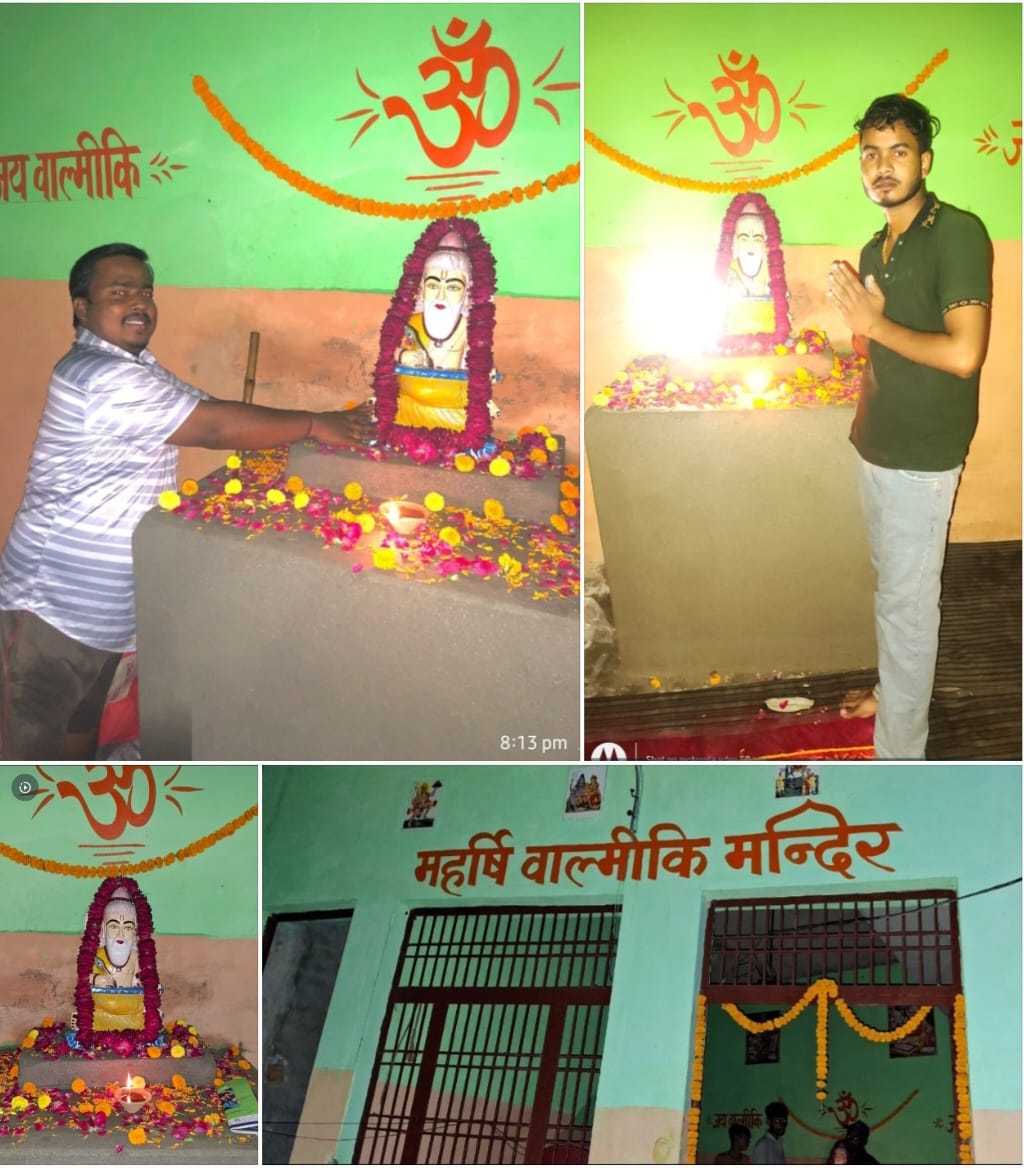 औरंगाबाद : बुलंदशहर वाल्मीकि जयंती के अवसर पर वाल्मीकि जी को श्रृद्धा सुमन अर्पित कर भावभीनी श्रद्धांजलि अर्पित की गई। वक्ताओं ने महर्षि वाल्मीकि के आदर्श अपनाने और समाज हित में एक जुट होकर संगठित होकर अन्याय का डट कर मुकाबला करने की वकालत की।वाल्मीकि चौक स्थित वाल्मीकि मंदिर में आयोजित कार्यक्रम का शुभारंभ कमेटी अध्यक्ष निशांत चिंदालिया और शरद वाल्मीकि ने संयुक्त रूप से दीप प्रज्वलित कर पुष्पार्चन करके किया। अपने संबोधन में उन्होने कहा कि महर्षि वाल्मीकि के आदर्शों पर चलकर ही देश और समाज का भला हो सकता है। उन्होने सभी से नशा और बुरी लतों का परित्याग कर अच्छे काम करने और अपने समाज हित में काम करने का आवाहन किया। संगठन पर जोर देते हुए उन्होने कहा कि संगठित होकर ही अपने अधिकार और सम्मान हासिल किए जा सकते हैं। अतः संगठित होकर अन्याय का डट कर मुकाबला करें।इस अवसर पर सभी उपस्थित लोगों ने वाल्मीकि जी की प्रतिमा पर माल्यार्पण कर पुष्पांजलि दी और श्रृद्धा पूर्वक नमन किया। शरद वाल्मीकि, निशांत चिंदालिया पप्पू सैक्रेटरी नरेश वाल्मीकि बंटी कार्तिक चिराग कांति पियूष सतेंद्र विवेक कृष्ण करन गौरव आदि मौजूद रहे।