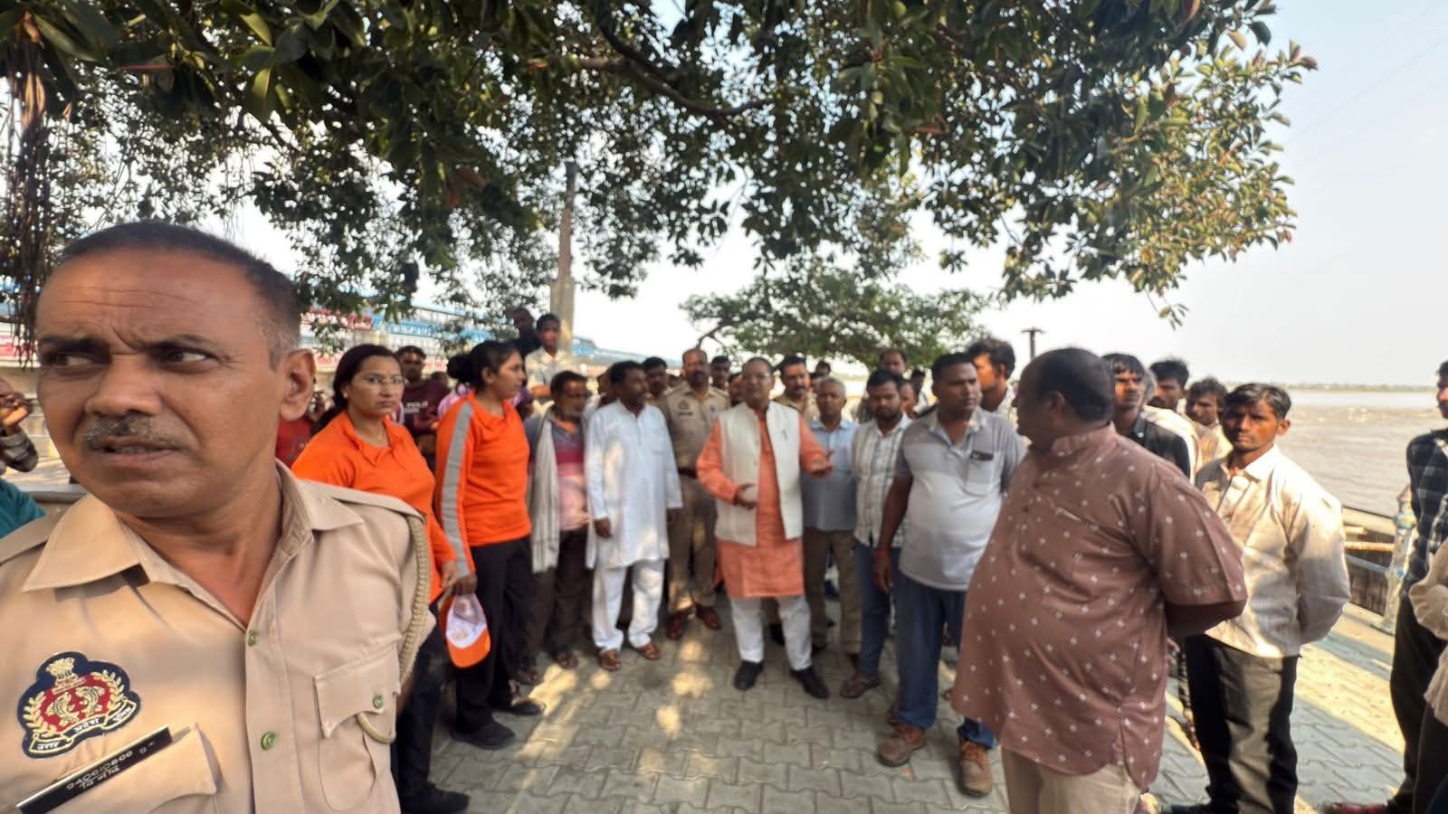 विधायक चंद्रपाल सिंह लोधी और थाना प्रभारी गंगा प्रसाद आर्य पहुंचे घाट पर