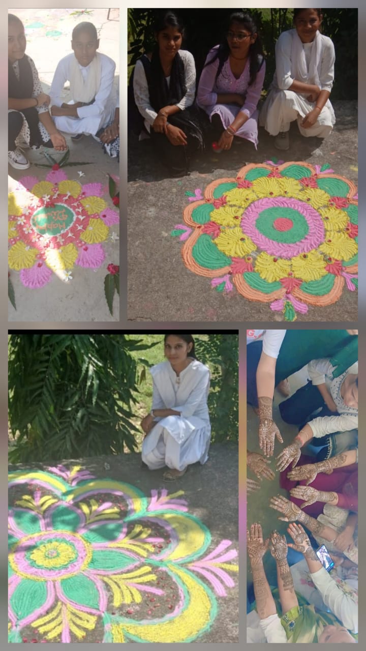 मेहंदी में सोफिया रंगोली में काजल अव्वल जी सी कालेज नंगलाकरन में हुई मेहंदी रंगोली प्रतियोगिता
