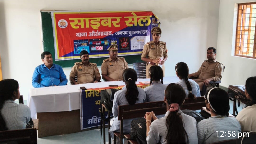 औरंगाबाद : बुलंदशहर आर के पब्लिक स्कूल में शुक्रवार को मिशन शक्ति अभियान फेस 5 के अंतर्गत जागरूक बनो सुरक्षित रहो कार्यक्रम का आयोजन किया गया। पुलिस टीम ने बच्चों को विशेष कर छात्राओं को सम्मान, अधिकार,साइबर फ्राड और आत्मरक्षार्थ टिप्स दिए।मिशन शक्ति टीम में शामिल वरिष्ठ उप निरीक्षक नरेश कुमार उप निरीक्षक खुश्बू राजपूत उप निरीक्षक संदीप कुमार कांस्टेबल अजीत सिंह रिपुदमन आदि ने छात्राओं को उनके हित और अधिकारों को लेकर चलाईं जा रही विभिन्न योजनाओं व हैल्प लाइन नंबर की विस्तृत जानकारी दी। साइबर फ्राड से बचाव हेतु टिप्स दिए गए और जागरूक बनो सुरक्षित रहो का मूलमंत्र दिया गया। प्रबंधक शाहिद अली एवं प्रधानाचार्य संदीप गर्ग ने पुलिस अधिकारियों को महत्वपूर्ण जानकारी बच्चों को देने के लिए आभार जताया और धन्यवाद ज्ञापित किया।मि