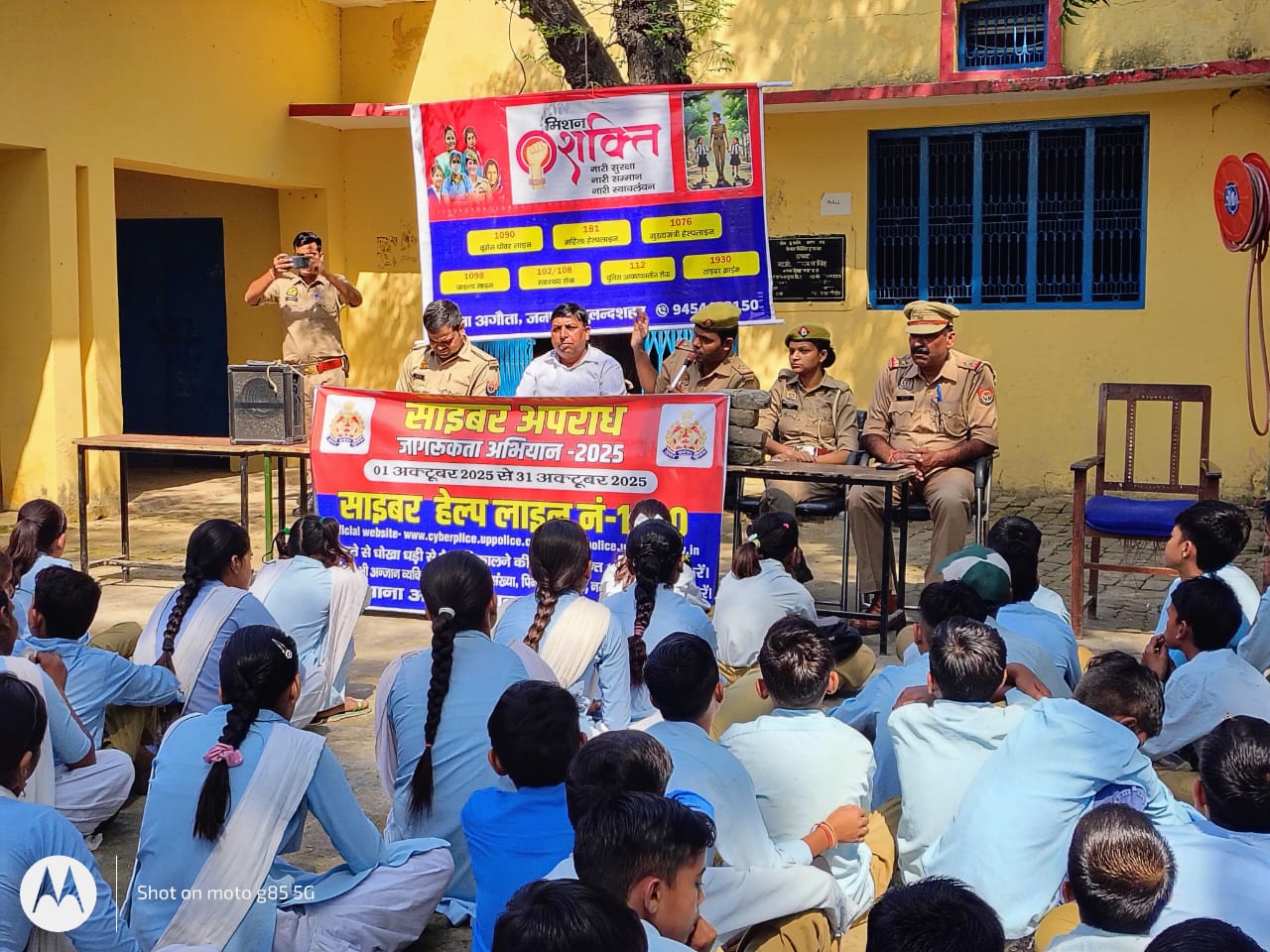 बुलन्दशहर : मे मिशन शक्ति के अन्तर्गत थाना अगौता के थानाध्यक्ष महोदय द्वारा मिशन शक्ति व साइबर फ्रॉड के सम्बन्ध मे जागरूकता कार्यक्रम आयोजित किया ।थानाध्यक्ष श्री अतुल चौहान ने छात्र छात्राओ को कार्यक्रम के विषय मे विस्तार से जागरूक करते हुए निडर होकर अध्ययन करने हेतु प्रेरित किया प्रधानाचार्य श्री रविशंकर तिवारी ने थानाध्यक्ष व पूरी टीम को हृदय से धन्यवाद देते हुए छात्र छात्राओ को समूह मे आने जाने के लिए प्रेरित किया ।विद्यालय के समस्त स्टाफ ने कार्यक्रम मे पूर्ण सहयोग प्रदान किए।