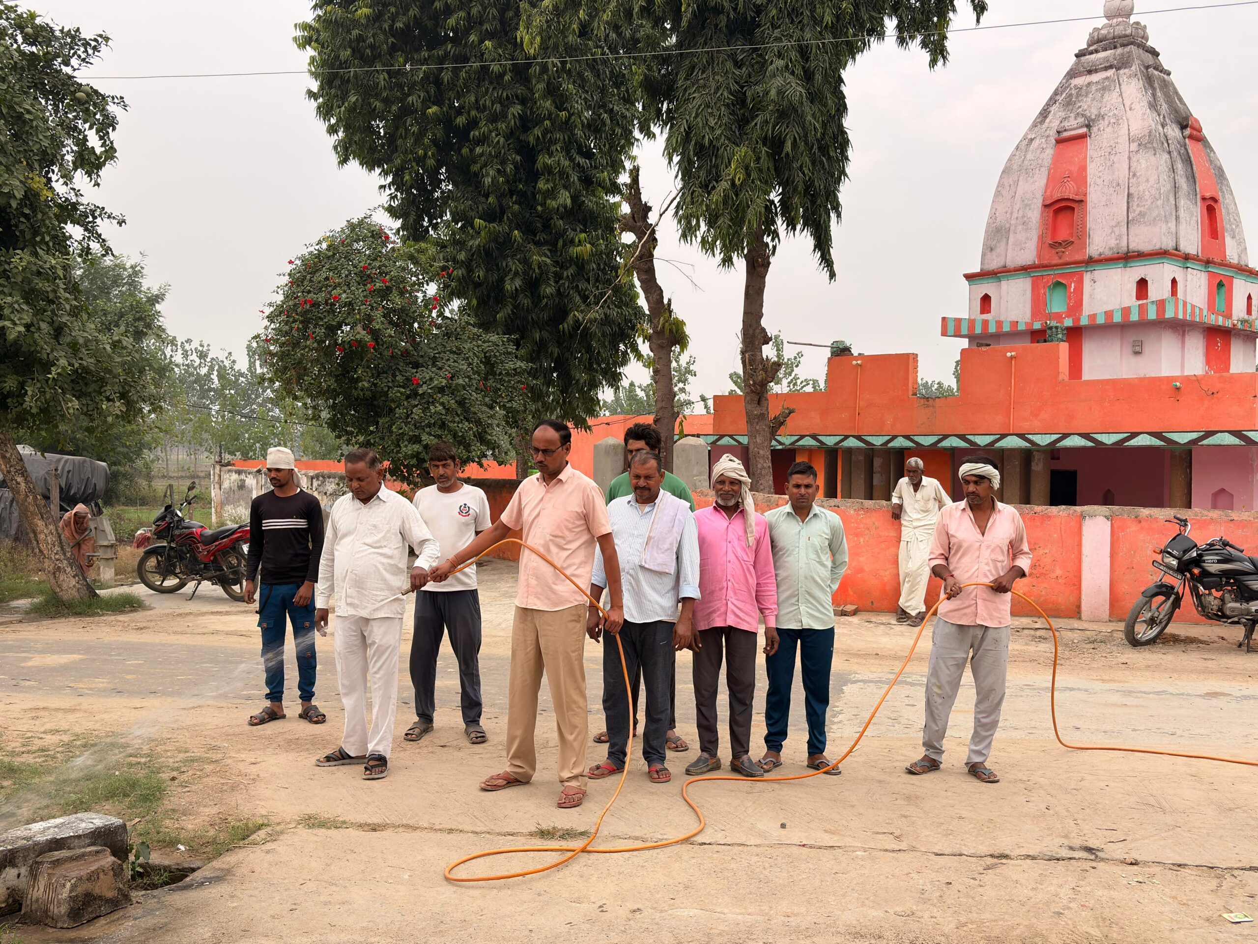 बुलंदशहर : में सोमवार को विधानसभा क्षेत्र में अनूपशहर के जनपद बुलंदशहर के गांव में बदलते मौसम विभाग व मच्छर आदि से फैल रही बीमारियों से बचाव के लिए ग्राम प्रधान राय सिंह द्वारा गांव में कराए जा रहे छिड़काव का शुभारंभ ग्राम प्रधान रायसिंह पूर्व क्षेत्र पंचायत सदस्य नेपाल सिंह के साथ शिव मंदिर रोरा से चालू कराकर गांव वासियों से अपने आसपास सफाई रखकर कूड़ा कचरा इकट्ठा होने की स्थिति में ग्राम प्रधान से सफाई कर्मी को सूचना देने जल भराव ना होने देने सहित बचाओ व सजक रहने का आह्वान किया शुभारंभ के समय राम किशोर, ग्राम प्रधान राय सिंह, अखिल भारतीय क्षत्रिय महासभा के मंडल अध्यक्ष कांग्रेस के कोऑर्डिनेटर ज्ञानेंद्र सिंह राघव,क्षेत्र पंचायत सदस्य नेपाल सिंह, मनोज जाटव,रामखिलाडी जाटव, सोनू जाटव,दुष्यंत राघव, सहित गांव वासी उपस्थित रहे