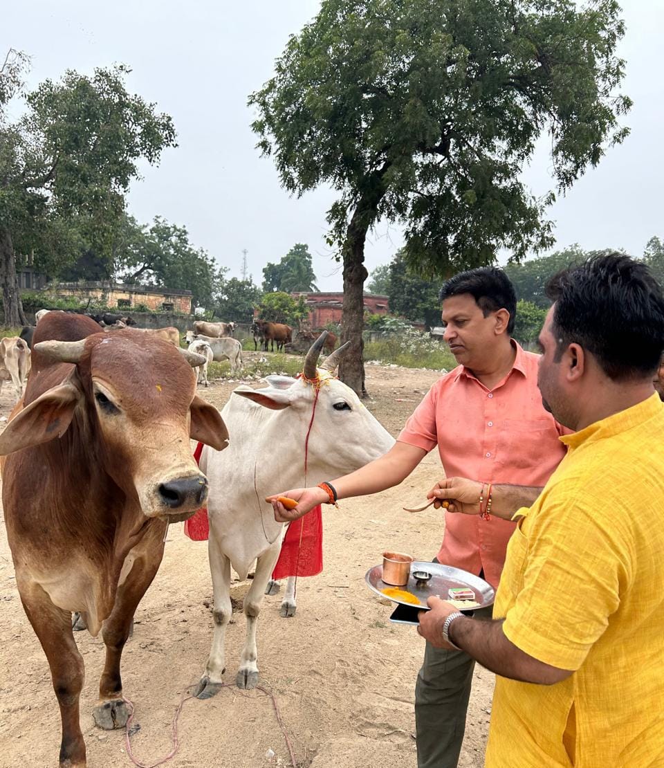 बुलंदशहर : में आज 30 अक्टूबर 2025 को भारतीय किसान संघ के कार्यकर्ताओं ने ग्राम समिति स्तर तक गौ माता का पूजन कर मनाया गोपाष्टमी पर्व इस अवसर पर भारतीय किसान संघ के जिला अध्यक्ष महेश चंद लोधी ने बताया गौ सेवा सबसे बड़ी सेवा है प्रत्येक किसान को एक गाय अवश्य पालनी चाहिए इससे गोवंश भी बचेगा और गौ आधारित खेती करने पर कृषि लागत भी कम होगी और हमें जहर मुक्त कृषि खाद्यान्न प्राप्त होंगे और उन्होंने कहागौवंश की सेवा एवं रक्षा भी भगवान श्रीकृष्ण के इस धरा धाम पर अवतरण का एक प्रमुख उद्देश्य रहा है। श्री बालकृष्ण प्रभु के प्रथम गौचारण उत्सव को ही गोपाष्टमी महोत्सव के रूप में मनाया जाता है। जिस ब्रह्म की चरण रज के लिए ब्रह्मा-शंकर तक तरसते हैं वो चरण गौमाता की सेवा के लिए कंकड़-पत्थर और कुंज-निकुंजों में विचरण करते हैं। गौमाता भगवान श्रीकृष्ण को अति प्रिय हैं इसलिए स्वयं कष्ट सहकर भी प्रभु ने गौमाता को सुखी करने का प्रयास किया है। गौमाता की सेवा के कारण ही प्रभु का नाम गोपाल पड़ा। गौ माता की सेवा परिवार में सुख-शांति, समृद्धि एवं पूर्वजों को सद्गति प्रदायक होती है। गोपाल के साथ-साथ गौमाताओं की सेवा हम समस्त सनातन धर्मावलंबियों का प्रधान कर्तव्य है। गौ सेवा ही गोपाल को रिझाने का मूल मंत्र है। गोपाष्टमी के पावन दिवस पर यथा सामर्थ्य गौमाताओं की सेवा के संकल्प के साथ इस पावन पर्व को सार्थक बनाने का प्रयास अवश्य करें। गौ माता पूजन के अवसर पर साथ में मुख्य रूप से जिला कोषअध्यक्ष विजय गुप्ता जी सह कोषाध्यक्ष शलभ तोमर जी जिला गन्ना प्रमुख ठाकुर जगपाल सिंह जी पंडित राजेश्वर शास्त्री जी आदि शामिल रहे