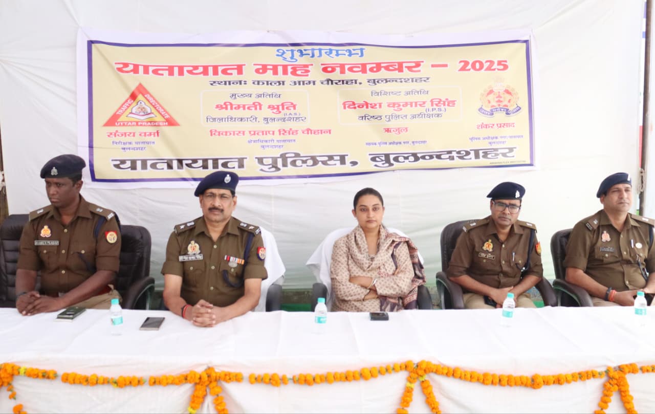जिलाधिकारी एवं वरिष्ठ पुलिस अधीक्षक बुलन्दशहर द्वारा कालाआम चौराहा पर यातायात माह नवम्बर-2025 का हरी झंडी दिखाकर किया गया शुभारम्भ।