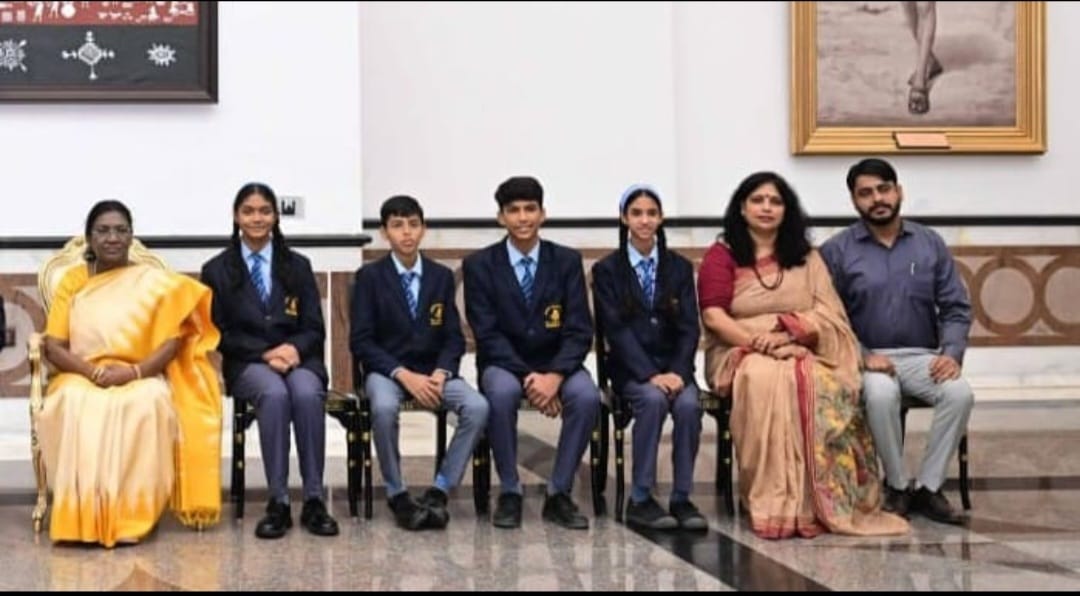 राष्ट्रपति महोदया से मिले जे पी विद्या मंदिर तौमडी के बच्चे प्रधानाचार्या सुनीता सिंह को दी महामहिम ने कुशल नेतृत्व के लिए बधाई