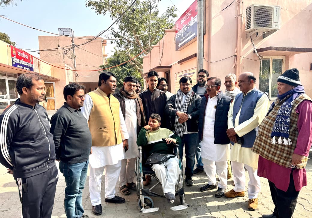 बुलंदशहर : अनूपशहर नगर में बीते 2 नवंबर की देर शाम कांग्रेस नेता इशांक इशू शर्मा के घर उनकी मां को बंधक बनाकर हुई डकैती का एक माह से अधिक समय के बाद भी खुलासा न होने पर कांग्रेस ने आक्रोश व्यक्त किया है और शनिवार को एसएसपी ऑफिस पहुंचकर नाराजगी व्यक्त की ।कांग्रेस जिलाध्यक्ष जियाउर्रहमान के नेतृत्व में शनिवार को दर्जनों कांग्रेसी दिव्यागंज प्रकोष्ठ के जिलाध्यक्ष इशांक इशू शर्मा के साथ एसएसपी ऑफिस पहुंचे और सीसीटीवी में घटना रिकॉर्ड होने के बाद भी खुलासा न होने पर आक्रोश व्यक्त किया । सीओ मधुप कुमार सिंह से कांग्रेसियों ने दो टूक कहा कि यदि दो दिन में घटना का खुलासा नहीं हुआ तो एसएसपी ऑफिस में धरना होगा। कांग्रेस जिलाध्यक्ष जियाउर्रहमान ने कहा कि कांग्रेस नेता इशांक इशू शर्मा के घर उनकी मां को बंधक बनाकर हुई डकैती का एक माह बाद भी खुलासा नहीं हुआ है यह शर्मनाक है । भाजपा सरकार में अपराधियों का बोलबाला है और पुलिस अपराधियों को पकड़ने में विफल है । उन्होंने कहा कि दो दिन में घटना का खुलासा नहीं हुआ तो एसएसपी ऑफिस में जिले भर के कांग्रेसी धरना देंगे। इस अवसर पर जिलाध्यक्ष जियाउर्रहमान, सुभाष गांधी, प्रशांत वाल्मीकि, किशन चौधरी, नईम मंसूरी, मुकेश रजक, सचिन पंडित, साहिल शाह, राजेंद्र जाटव, कुंवर आदिल, आशु कुरैशी आदि मौजूद रहे ।