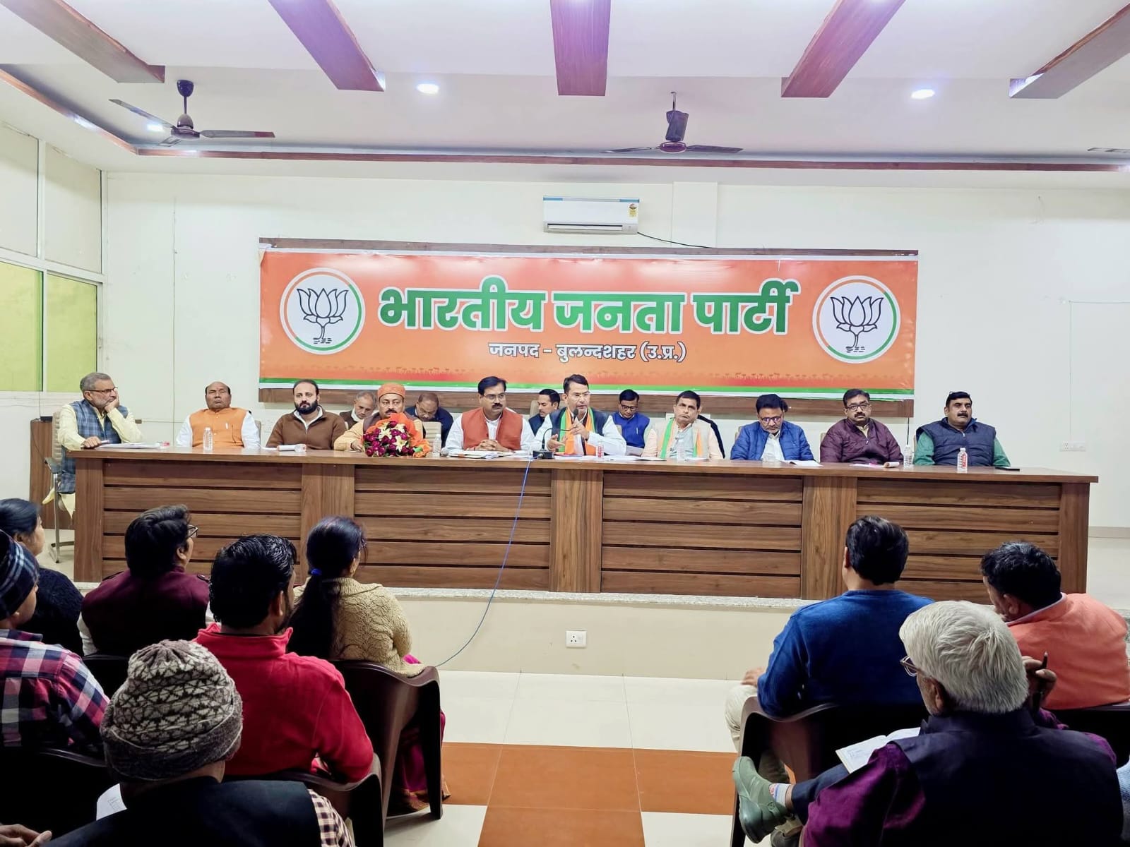 बुलंदशहर : में भारतीय जनता पार्टी जिला कार्यालय पर आज मतदाता सूची विशेष गहन पुनरीक्षण (SIR) कार्यक्रम को लेकर एक महत्वपूर्ण बैठक का आयोजन किया गया। बैठक में मुख्य अतिथि के रूप में जिला प्रभारी एवं प्रदेश मंत्री वसंत त्यागी उपस्थित रहे। बैठक की अध्यक्षता भारतीय जनता पार्टी के जिला अध्यक्ष विकास चौहान ने की तथा बैठक का संचालन भाजपा नेता जयप्रकाश शर्मा द्वारा किया गया। इस अवसर पर सदर विधायक प्रदीप चौधरी भी विशेष रूप से उपस्थित रहे।बैठक में जनपद के अंतर्गत आने वाली सभी विधानसभाओं के प्रत्येक मंडल से मंडल प्रवासी एवं मंडल संयोजक उपस्थित रहे। मुख्य अतिथि द्वारा SIR कार्यक्रम की समीक्षा करते हुए सभी मंडलों से मतदाता सूची से संबंधित प्रगति की जानकारी ली गई तथा आगामी कार्ययोजना को लेकर आवश्यक दिशा-निर्देश प्रदान किए गए।मुख्य अतिथि जिला प्रभारी वसंत त्यागी ने कहा कि “मतदाता सूची विशेष गहन पुनरीक्षण लोकतंत्र की मजबूती का आधार है। प्रत्येक मंडल स्तर पर कार्यकर्ताओं को सक्रिय होकर यह सुनिश्चित करना होगा कि हर पात्र मतदाता का नाम सूची में शामिल हो और किसी प्रकार की त्रुटि न रहे।”जिला अध्यक्ष विकास चौहान ने कहा कि “SIR कार्यक्रम पार्टी के लिए संगठनात्मक रूप से अत्यंत महत्वपूर्ण है। सभी मंडल, शक्ति केंद्र एवं बूथ स्तर तक समन्वय बनाकर कार्य करें, ताकि मतदाता सूची शुद्ध, अद्यतन और त्रुटिरहित हो।”सदर विधायक प्रदीप चौधरी ने कहा कि “मतदाता सूची की शुद्धता ही निष्पक्ष और मजबूत लोकतंत्र की पहचान है। भाजपा कार्यकर्ता इस अभियान को जनसेवा मानकर पूरी निष्ठा से कार्य करें और प्रत्येक पात्र नागरिक को उसका मतदान अधिकार दिलाने में सहयोग करें।”बैठक में भवतोज गुर्जर, शंभू सिंह राघव,हितेश गर्ग ,जिला महामंत्री अजय त्यागी, संतोष वाल्मीकि ,संजय चौधरी,संजय गुर्जर, जिला उपाध्यक्ष नागेन्द्र प्रधान,दीपक ऋषि, ऊषा बंसल, महिला मोर्चा जिला अध्यक्ष शशि शर्मा ,युवा मोर्चा जिला अध्यक्ष दिवाकर सिंह, युवा मोर्चा महामंत्री केपी सिंह, नवीन शर्मा,कुलदीप चौधरी, अभिनव वर्मा ,गौरव मित्तल,आनंद चौधरी, अशोक चौधरी,ललित ठाकुर, मंडल अध्यक्ष सचिन शर्मा, भीष्म सिसोदिया बिल्लू पंडित डम्बर सिंह, कृष्णपाल सिंह,राजीव सैनी, तिर्वेश गुप्ता,कल्पना वर्मा,स्वदेश चौधरी,कुसुम गौतम,शालिनी शर्मा,अनुराधा तौमर,पूनम चौधरी,मंजू तेवतिया,पूजा गुप्ता,डाॅली कश्यपप्रवासी मंडल संयोजक एवं पार्टी के वरिष्ठ कार्यकर्ता बड़ी संख्या में उपस्थित रहे।