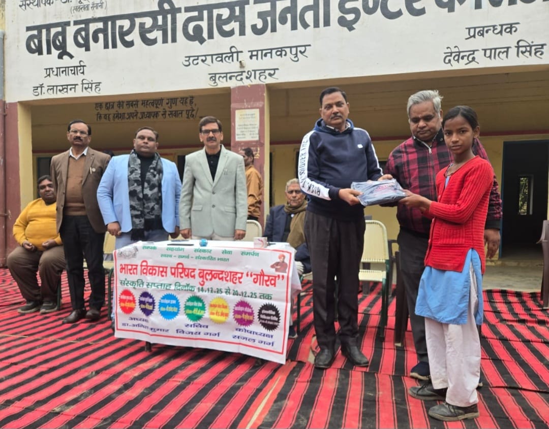 औरंगाबाद : बुलंदशहर भारत विकास परिषद गौरव शाखा ने निर्धन छात्र छात्राओं को स्वेटर वितरण किया। विद्यालय स्टाफ ने परिषद के सेवा भाव की सराहना करते हुए आभार जताया।भारत विकास परिषद गौरव के अध्यक्ष डॉ अनिल कुमार ने सभी सदस्यों के साथ गुरुवार को बाबू बनारसी दास इंटर कालेज मानकपुर पहुंच कर आर्थिक रूप से पिछड़े छात्र छात्राओं को सर्दी से राहत दिलाने की गरज से स्वेटर वितरण कार्यक्रम आयोजित किया। शुभारंभ वंदेमातरम गायन के साथ किया गया। विद्यालय स्टाफ के सहयोग से पात्र बच्चों का चयन कर स्वेटर प्रदान किए गए। कुल नब्बे स्वेटर बच्चों में वितरित किए गए परिषद अध्यक्ष डॉ अनिल कुमार, प्रेरणा, सचिव विजय गर्ग राकेश मित्तल के डी गुप्ता सुशील गर्ग जतिन गोयल आदि अनेक सदस्य मौजूद रहे।