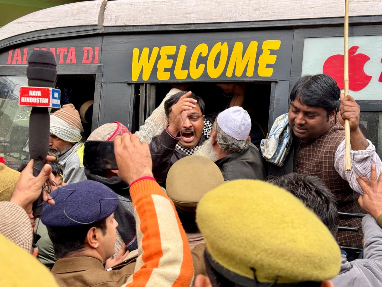कांग्रेस जिलाध्यक्ष को जबरन बस में डाला, कार्यकर्ताओं ने की नारेबाजी