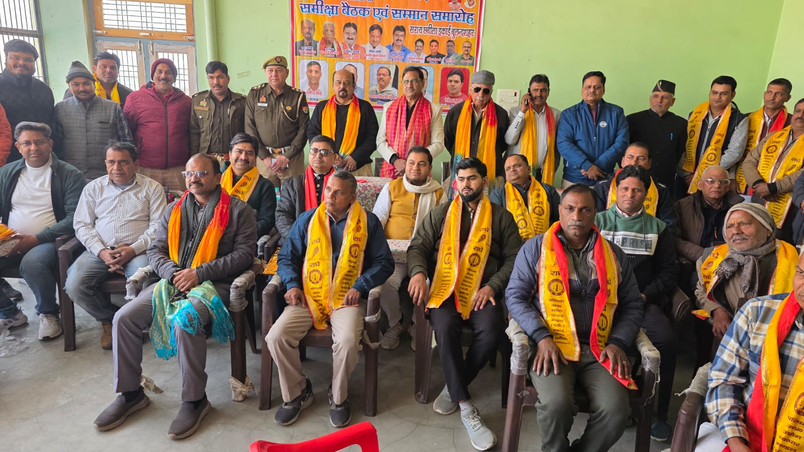 बुलंदशहर : में पश्चिम उत्तर प्रदेश उद्योग व्यापार मंडल सराय छबीला इकाई द्वारा आयोजित समीक्षा बैठक एवं सम्मान समारोह का आयोजन चौधरी विजेंद्र सिंह की अध्यक्षता में संपन्न हुआ जिसका संचालन जिला महामंत्री अनुराग अग्रवाल ने किया जिसमें मुख्य अतिथि के रूप में प्रदेश के वरिष्ठ उपाध्यक्ष एस के सक्सेना ,विशिष्ट अतिथि अमरीश जिंदल प्रदेश उपाध्यक्ष ,नरेश गोयल जिला अध्यक्ष ,एवं TI राजपाल सिंह तोमर मंडी चौकी प्रभारी हरेंद्र सिंह उपस्थित रहे कार्यक्रम में भारी संख्या में सराय छबीला इकाई के सदस्य जिला प्रदेश एवं नगर इकाई के सदस्य मौजूद रहेमुख्य अतिथि ने सराय छबीला इकाई की प्रशंसा करते हुए कहा कि इकाई द्वारा संगठन में किसी के यहां भी किसी भी परेशानी के लिए हर समय तैयार रहना यह उनके संगठन के प्रति अपनी निष्ठा का जीता जाता उदाहरण है जो की मुश्किल से ही कहीं मिल पाता है जिला अध्यक्ष नरेश गोयल द्वारा सराय छबीला इकाई के सभी व्यापारियों को भरोसा दिलाया कि कोई भी किसी भी तरह की परेशानी सराय छबीला के किसी भी व्यापारी को आती है तो संगठन सदैव उनके साथ खड़ा हुआ है मंडी चौकी प्रभारी द्वारा सभी व्यापारियों को भरोसा दिलाया कि किसी भी तरह की परेशानी के लिए पुलिस की मदद ले सकते हैं उन्होंने व्यक्तिगत नंबर सभी को उपलब्ध कराया डॉ घनश्याम को सराय छबीला इकाई का संरक्षक नियुक्त किया गयासराय छबीला अध्यक्ष जोगिंदर सिंह ने सभी आए हुए अतिथियों का धन्यवाद कियाजिला सचिव सुमित महेश्वरी विजय गुप्ता अरुण गोयल विशाल रस्तोगी अभय चंद्र दीपक विकास बंसल शिवन गोयल, संचित एलाइंस, सुरेश कुमार, कमल किशोर, वीरेंद्र कुमार ,देवेंद्र कुमार, अतुल कुमार ,राजेंद्र कुमार ,राजेंद्र नगर, कमलेश कुमार, भवेश कुमार, राजू कुमार सिंह, सुनील अग्रवाल, अनुज अग्रवाल, छत्रपाल ,प्रमोद कुमार, विक्रम सिंह, आदि व्यापारी एवं पदाधिकारी मौजूदरहे