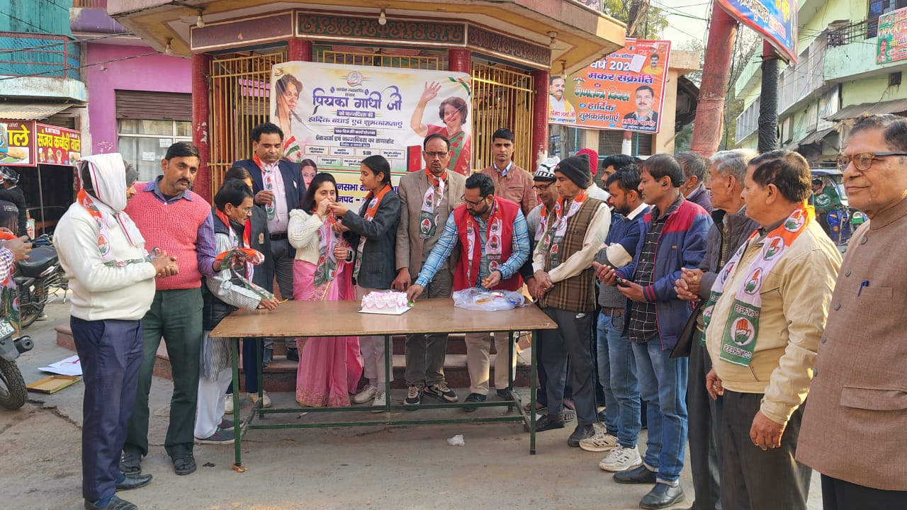 कांग्रेस नेताओं ने राष्ट्रीय महासचिव सांसद प्रियंका दीदी का डिस्ट्रिक्ट को ऑर्डिनेटर प्रज्ञा गौड़ मनरेगा व कॉर्डिनेटर ज्ञानेंद्र सिंह राघव के साथ कांग्रेस नेता व कार्यकर्ता नें केक काटकर मनाया जन्मदिन