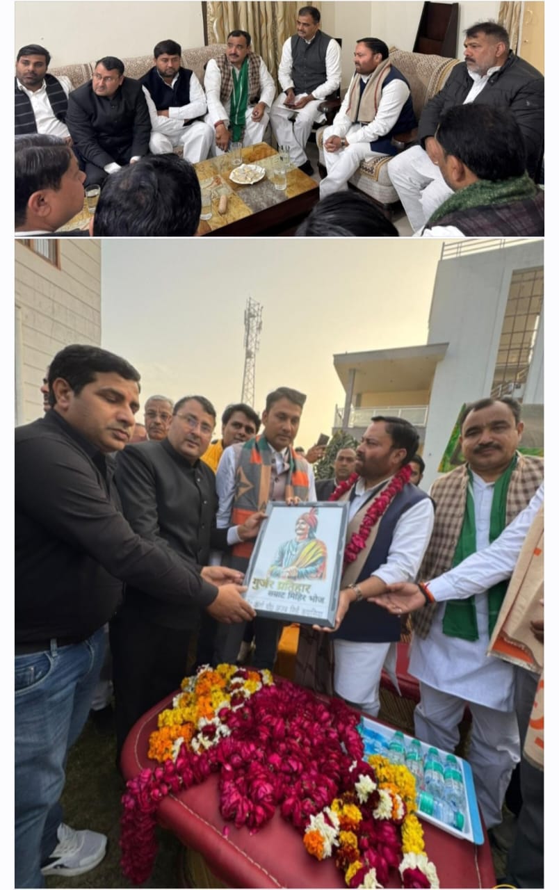 औरंगाबाद : बुलंदशहर ग्राम जौंठ में शनिवार को प्रदेश के कैबिनेट मंत्री अनिल कुमार का गणमान्य लोगों ने माल्यार्पण कर जोरदार स्वागत सत्कार किया। मंत्री जी ने क्षेत्र के विकास पर चर्चा करते हुए प्रदेश सरकार की जनकल्याणकारी योजनाओं की जानकारी दी।प्रदेश के विज्ञान एवं प्रौद्योगिकी कैबिनेट मंत्री अनिल कुमार शनिवार को ब्लाक लखावटी अंतर्गत ग्राम जौंठ में गूर्जर नेता चौधरी अजब सिंह कपासिया के आवास पर पहुंचे। चौधरी अजब सिंह कपासिया के नेतृत्व में क्षेत्र के गणमान्य लोगों ने मंत्री का माल्यार्पण कर पुष्प गुच्छ भेंट कर शाल उढा कर जोरदार स्वागत सत्कार किया।मंत्री जी ने कपासिया के परिजनों से शिष्टाचार भेंट कर उनका हाल जाना।मंत्री जी ने गणमान्य लोगों के साथ क्षेत्र के विकास शिक्षा विज्ञान एवं तकनीकी सुविधाओं के विस्तार पर विस्तार से चर्चा की। और प्रदेश सरकार द्वारा जनता की सुरक्षा, समृद्धि, स्वास्थ्य शिक्षा आदि के लिए चलाई जा रही विभिन्न कल्याणकारी योजनाओं की जानकारी देते हुए उनका लाभ उठाने की अपील की।अजब सिंह कपासिया के नेतृत्व में गणमान्य लोगों ने मंत्री को सम्राट मिहिर भोज स्मारक स्मृति चिन्ह भेंट कर सम्मानित किया।इस अवसर पर रालोद जिलाध्यक्ष पंकज प्रधान, डॉ कुंवरवीर सिंह, शिकारपुर के पूर्व ब्लाक प्रमुख मुकेश कुमार ,रालोद युवा जिलाध्यक्ष राहुल गूर्जर, समाजसेवी महावीर रौसा, विजय शर्मा शिवा ढाबा,अजीम नंबरदार तिलक राम पंवार,विजेंद्र नेता,बाबी गूर्जर धर्म पाल कपासिया सुधीर प्रधान, राजीव शर्मा बालका,आदि सैकड़ों लोग मौजूद रहे।