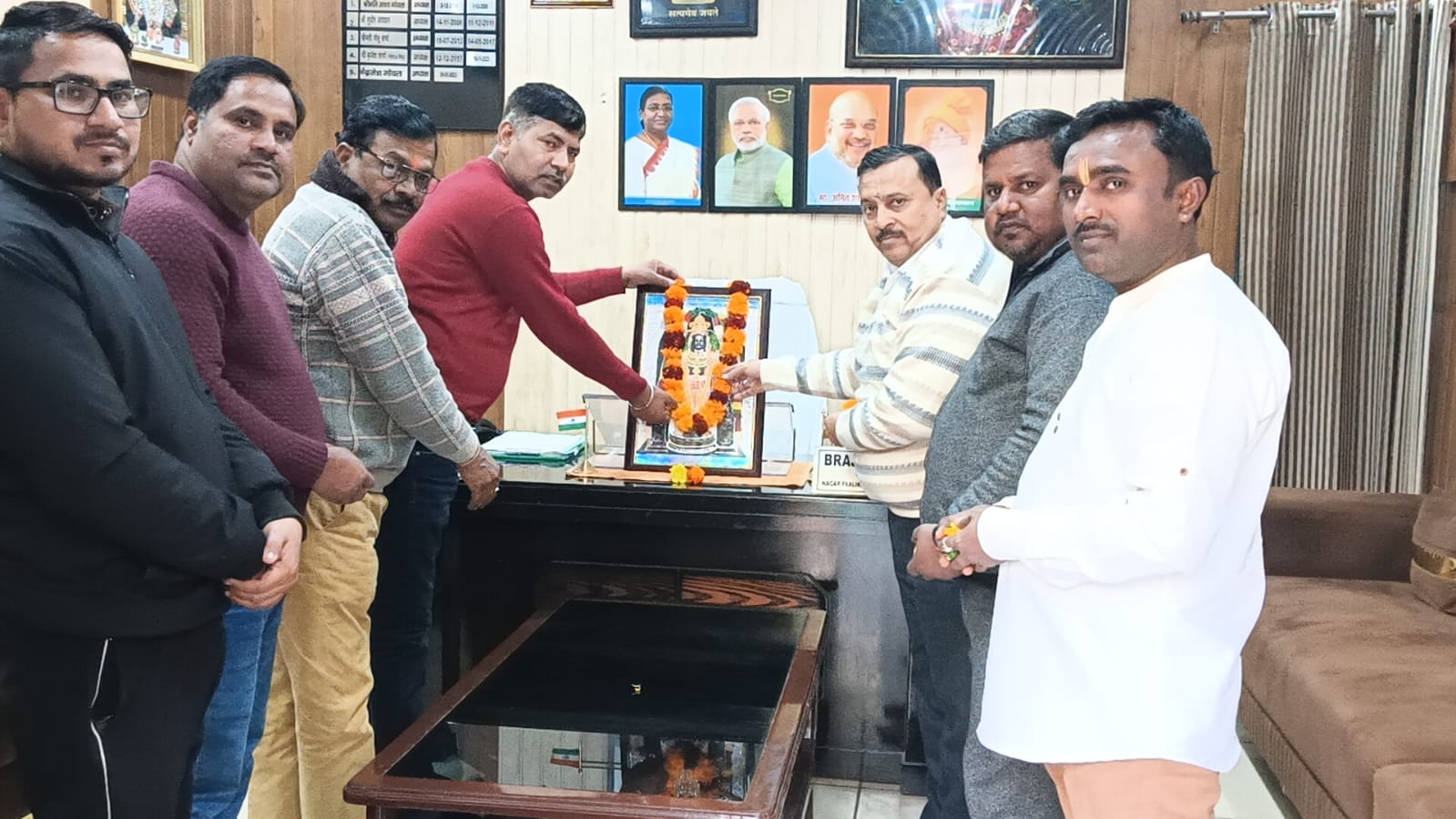 बुलंदशहर : में श्री राम मंदिर प्राण प्रतिष्ठा की द्वितीय वर्षगांठ के पावन अवसर पर श्री ब्रजेश गोयल जी अध्यक्ष नगर पालिका परिषद छोटी काशी अनूपशहर ने अपने कार्यालय में श्री राम की तस्वीर पर माल्यार्पण कर पुष्प अर्पित करते हुए कहा प्रभु श्रीराम की कृपा ऐसे ही नगरवासियों सदैव बनी रहे।इस अवसर पर दिलीप कुमार संजय यादव लिपिक सभासद विट्टू सिघंल देवेंद्र प्रजापति मनोज कुमार गोल्डी पूर्व प्रत्याशी लोकसभा क्षेत्र बुलन्दशहर उत्तर प्रदेश व अन्य गणमान्य लोग उपस्थित रहे।