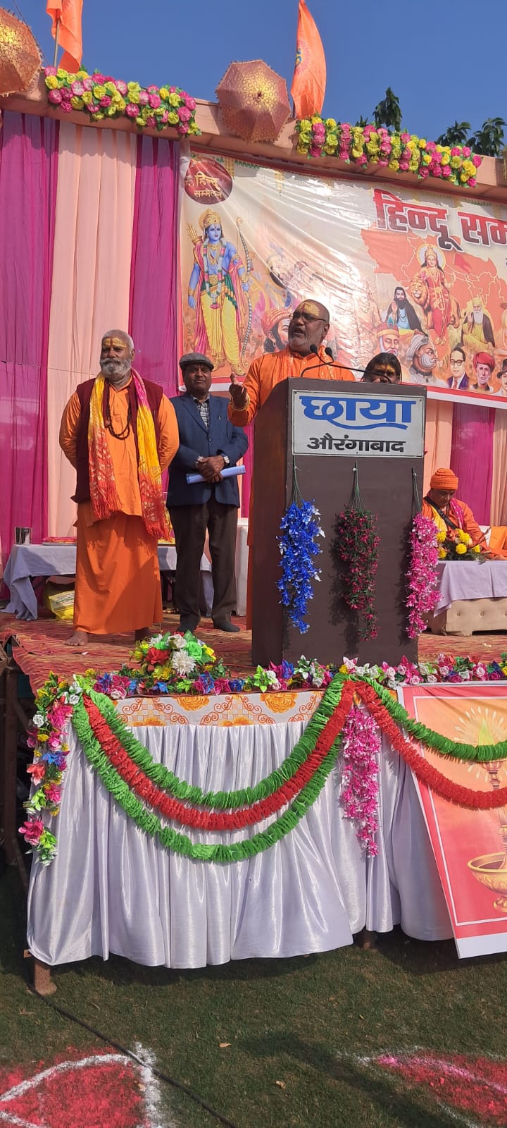 औरंगाबाद : बुलंदशहर शिव शक्ति धाम डासना के पीठाधीश्वर ,महामंडलेश्वर यति नरसिंहानन्द गिरी ने कहा कि हिंदू समाज अस्त्र-शस्त्र और शास्त्र से सुसज्जित होकर ही अपने अस्तित्व और स्वाभिमान की रक्षा कर सकता है। महामंडलेश्वर शनिवार को बालका रोड स्थित बौम्बे रिसोर्ट में आयोजित विराट हिन्दू सम्मेलन को बतौर मुख्य अतिथि संबोधित कर रहे थे। उन्होने कहा कि मानव को अपने परिवार की स्त्रियों के आदर और स्वाभिमान की रक्षा करनी चाहिए वहीं स्त्रियों को अपने पुत्र और पति के स्वाभिमान की रक्षा करनी चाहिए। उन्होने कहा कि जिस तरह माता पार्वती ने अपने पुत्र गणेश की हत्या सहन ना कर भगवान शिव को ललकारता और उनसे अपने पुत्र को पुनः जीवित करने के लिए विवश कर दिया और अपने पिता के घर भगवान शिव का अपमान सहन‌ नही कर माता सती ने अपने पिता के यज्ञ को ही तहस-नहस कर दिया था उसी तरह परिवार जनों को एक दूसरे की रक्षा करनी चाहिए। हिंदू समाज को शस्त्र लाइसेंस बनवाने और अपने वंश तथा हिन्दू समाज की रक्षा करने के लिए परिवार वृद्धि का आवाहन किया। महामंडलेश्वर ने कहा कि वर्तमान सरकारें शस्त्र लाइसेंस जारी करने में असफल साबित हो रही हैं जबकि पिछली सरकारों में असरदार लोगों ने अपने समर्थकों को भारी संख्या में शस्त्र लाइसेंस जारी किए। उन्होने कहा कि आबादी का असंतुलन निकट भविष्य में हिंदू समाज के अस्तित्व पर प्रश्न चिन्ह लगा सकता है। जब तक हिन्दू समाज बहुसंख्यक समुदाय बना रहेगा तभी तक हिन्दू अपने स्वाभिमान सत्ता और अस्तित्व की रक्षा करने में समर्थ रहेगा। और जिस दिन हिंदू अल्पमत में आ जायेगा उसकी बहिन बेटियां तक सुरक्षित नहीं रह सकेंगी।राष्ट्रीय स्वयंसेवक संघ के प्रांत सह संपर्क प्रमुख मेरठ वेदपाल सिंह ने सम्मेलन को बतौर मुख्य वक्ता संबोधित करते हुए राष्ट्रीय स्वयंसेवक संघ के इतिहास और उसके कार्य कलापों पर प्रकाश डाला। राममंदिर निर्माण में संघ की भूमिका, आप्रेशन सिंदूर, रामसेतु मुद्दे में संघ की भूमिका पर प्रकाश डाला। उन्होने सामाजिक समरसता पर्यावरण संरक्षण कुटुम्ब प्रबोधन स्वदेशी अपनाओ तथा नागरिक कर्तव्यों को निष्ठा पूर्वक पूरा करने का भी आवाहन किया।प्राचीन नागेश्वर मंदिर के महंत आचार्य कुलदीप शास्त्री ने सम्मेलन की अध्यक्षता करते हुए हिन्दू समाज से अपने बच्चों के नाम अपने पूज्य देवों के नाम पर रखने की आवश्यकता जताई और आगंतुक अतिथियों को धन्यवाद ज्ञापित किया आगंतुक अतिथियों का गणमान्य लोगों योगेश कुमार अग्रवाल, परमानंद वर्मा, ऋषिपाल भड़ाना, राजेश गोयल,संतराम भड़ाना, शंकर लाल चमन लाल परवाना, ओम वाल्मीकि, आदि ने पटका पहना कर भगवान श्री राम का प्रतीक चिन्ह भेंट कर सम्मानित किया।सरस्वती विद्या मंदिर क