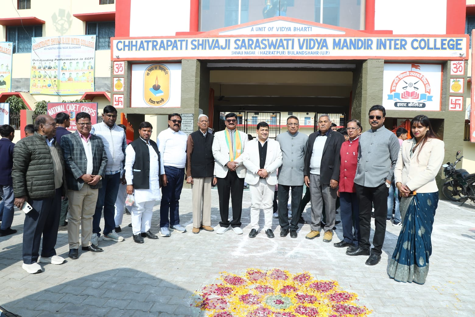 बुलंदशहर : में हजरतपुर स्थित, छत्रपति शिवाजी सरस्वती विद्या मंदिर इंटर कॉलेज बुलंदशहर में 77वां गणतंत्र दिवस मनाया गया जिसमें मुख्य अतिथि मनवीर सिंह (क्षेत्रीय अध्यक्ष विद्या भारती एवं क्षेत्रीय कार्यवाह राष्ट्रीय स्वयंसेवक संघ), विशिष्ट अतिथि लक्ष्मीकांत पांडे (बेसिक शिक्षा अधिकारी), मनोज नारायण बेरी (प्रबंधक), मुकेश अग्रवाल (उपाध्यक्ष), यशवीर सिंह (उपप्रबंधक), ब्रजकिशोर (कोषाध्यक्ष), समिति सदस्य रामकिशन, सतीश उपाध्याय, मेघराज सिंह, नरेंद्र बंसल, हितेश गर्ग ,41 एनसीसी यूनिट से सूबेदार मेजर धर्मवीर,गुरविंदर व प्रधानाचार्या हर्षिता सांगवान उपस्थित रही।कार्यक्रम में ध्वजारोहण मुख्य अतिथि मनवीर सिंह व प्रबंधक मनोज बेरी ने संयुक्त रूप से किया इसके पश्चात कार्यक्रम एक भारत श्रेष्ठ भारत को अंगीकार करते हुए मनाया गया जिसमें विद्यालय के भैया बहनों द्वारा विभिन्न सांस्कृतिक कार्यक्रम प्रस्तुत किए गए जिसमें “आजादी की खुली हवा में निकले सीना तान के” सभी के आकर्षण का केंद्र रहा। विशिष्ट अतिथि लक्ष्मीकांत पांडे ने सभी को गणतंत्र दिवस की शुभकामनाएं देते हुए बताया कि हमारा गणतंत्र विश्व का सबसे बड़ा लिखित संविधान है इसमें हमारी आजादी के साथ जिम्मेदारियां भी हैं यह संविधान ही हमें एक आदर्श नागरिक बनने की प्रेरणा देता है तथा इसी के अनुरूप चलकर हम देश को प्रगति के शिखर की ओर ले जा सकते हैं। मुख्य अतिथि मनवीर सिंह ने बताया कि भारत विश्व का इकलौता ऐसा देश है जहां सभी धर्म, संप्रदाय के लोग मिलजुल कर रहते हैं इसके पीछे केवल हमारे संस्कार व हमारा संविधान है जो सभी को समानता का अधिकार देता है। वर्तमान में भारत विश्व ने अपनी अलग कीर्ति स्थापित कर रहा है जो की निडरता के साथ अपने शत्रुओं का सामना करता है इसका उदाहरण ऑपरेशन सिंदूर से भी दिया जा सकता है।प्रबंधक मनोज बेरी ने सभी को संबोधित करते हुए कहा कि विद्यालय में इस वर्ष 9 भैया भारतीय सेना में चयनित हुए हैं यह हमारे लिए गौरव का विषय है, स्वयं से पहले राष्ट्र के लिए विचार करना एवं उसके लिए समर्पित रहना यह विद्या भारती का मुख्य उद्देश्य है, हमारे विद्यालय से पढ़ने वाले भैया बहन सदैव मातृभूमि की सेवा के लिए तत्पर रहते हैं विद्यालय में एनसीसी, स्काउट, एन एस एस, भैया बहनों के सर्वांगीण विकास के लिए कार्य कर रहे हैं विद्यालय पूर्ण रूप से संवेदनशील, राष्ट्र के लिए समर्पित व भारत को विश्व गुरु बनाने के लिए भैया बहनों का विकास करने के लिए प्रतिबद्ध है हम आगे भी भैया बहनों के द्वारा देश को नई ऊंचाइयों तक ले जाने के लिए प्रयत्नशील रहेंगे। उपाध्यक्ष मुकेश अग्रवाल में आए हुए सभी अतिथियों का आभार व्यक्त किया एवं समय-समय पर विद्यालय में आकर विद्यालय क
