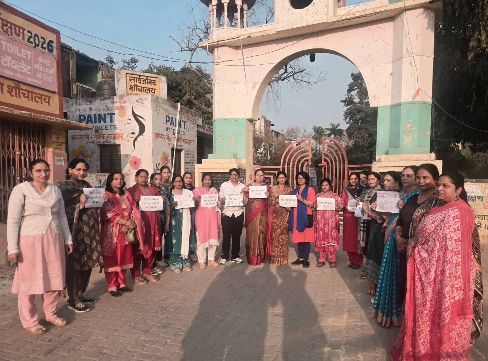बुलंदशहर : में आज राज बाबू पार्क, काले आम चौराहे पर भारतीय जनता पार्टी जनपद बुलंदशहर महिला मोर्चा द्वारा नई दिल्ली में आयोजित AI Summit के दौरान नेशनल कांग्रेस द्वारा किए गए कथित नग्न प्रदर्शन के विरोध में जोरदार धरना-प्रदर्शन किया गया।कार्यक्रम का नेतृत्व भाजपा जिला अध्यक्ष महिला मोर्चा शशि शर्मा ने किया। इस अवसर पर महिला मोर्चा की बड़ी संख्या में महिला कार्यकर्ता उपस्थित रहीं।प्रदर्शन के दौरान वक्ताओं ने कांग्रेस के इस कृत्य को देश की गरिमा एवं संस्कृति के विरुद्ध बताते हुए कड़ी निंदा की। कार्यकर्ताओं ने हाथों में तख्तियां लेकर नारेबाजी की और कांग्रेस से सार्वजनिक रूप से माफी की मांग की।इस अवसर पर भाजपा महिला मोर्चा जिला अध्यक्ष शशि शर्मा ने कहा कि “अंतरराष्ट्रीय मंच पर भारत की छवि को धूमिल करने का कोई भी प्रयास निंदनीय है। कांग्रेस द्वारा किया गया यह कृत्य देश की मर्यादा और लोकतांत्रिक मूल्यों के खिलाफ है। भारतीय जनता पार्टी राष्ट्र की अस्मिता की रक्षा के लिए सदैव संघर्षरत रहेगी।”महिला मोर्चा जिला महामंत्री ने कहा कि “भारतीय संस्कृति शालीनता और मर्यादा की प्रतीक है। कांग्रेस नेताओं द्वारा किया गया यह प्रदर्शन भारतीय समाज की भावनाओं को आहत करने वाला है। महिला मोर्चा इस प्रकार की राजनीति का पुरजोर विरोध करती है और आगे भी करती रहेगी।”प्रदर्शन में महिला मोर्चा की जिला पदाधिकारी स्वदेश चौधरी,कुसुम गौतम,बबीता सिंह,पूनम चौधरी,शालिनी शर्मा,अलका,सुमन शुक्ला, कल्पना भटनागर,शोभा सिंह के साथ कार्यकर्ता एवं अन्य भाजपा पदाधिकारी उपस्थित रहे।
